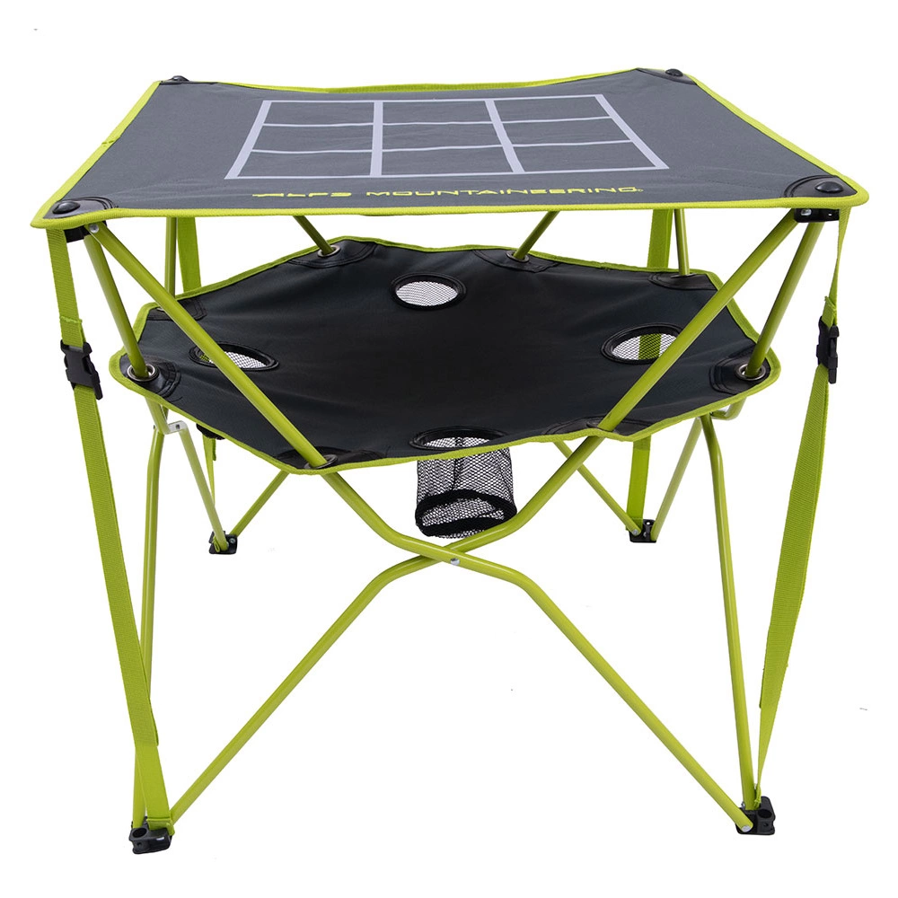 If you are looking for a table that’s quick and easy to set up, has room for your drinks and still room for games, and is lightweight the Eclipse Table is the one for you. You simply buckle the straps at each corner and adjust them to allow the tautness that you prefer. Since there are two layers, the lower level has four built-in beverage holders so you don’t have to worry about your drinks getting knocked over while you’re eating or playing games and the top level is flat for your other activities. When it’s time to head home, unlatch the buckles, and slide the table into the included carry bag and you’re set for your next outing.