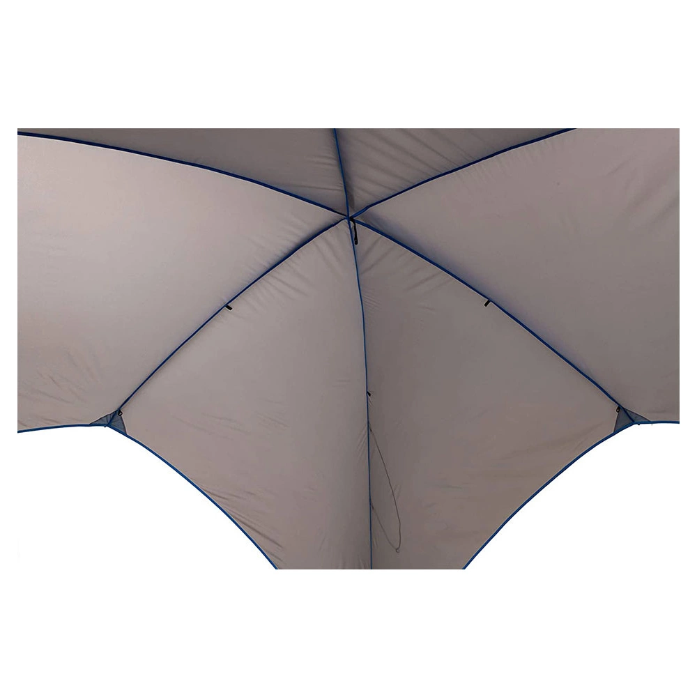 The Tri-Awning Elite is based on the original Tri-Awning with a few key upgrades: Aluminum poles with shorter segments, additional mesh “sunshield,” additional guy out points, and smaller pack size. It is a great item to bring along to almost any outdoor event, rain or shine. With endless height and area options, it can fit all your activity needs and help block the sun at different times of the day. Whether you’re playing games, taking a break from the sun, or enjoying a picnic, the Tri-Awning Elite compacts so small, and sets up so easy, that it is going to become an item you want to bring to all your events. This awning uses an easy to assemble three-pole design. It includes a removable “sunshield” side fabric panel and “sunshield” side mesh panel for extra protection from the sun, wind, or rain. One side eave of the awning is taller so you have improved visibility. Weighing in at only 7 pounds, it is 2.5 pounds lighter than the regular version.